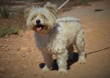 No nos podemos creer que alguien tenga el corazón tan negro de dejar a este animal en perrera. En toda la boca solo tiene un colmillo, no sabemos que habrá estado comiendo pero tenía fuertes diarreas. Ya se está controlando con Flagyl, sobres fortiflora y potitos de bebé. Pesa menos de 3 kilos.