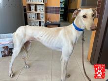 Este precioso galgo lleno de cicatrices llevaba un mes deambulando por un pueblo, sin dejarse coger ni acercarse a nadie. Alimentandose de lo que le proporcionaba la gente del pueblo.