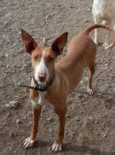 Esta podenca vivía en cercanías del cortijo el Fraile (Almería), asustada, muy delgada, caminaba diariamente, sin un rumbo fijo. Se le notaban las costillas y tenía una gran infección en uno de sus ojos.