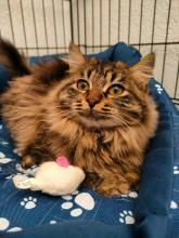 Es una gatita cariñosa, dulce, melosita y aparentemente muy sana. Solo estaba cuajada de pulgas, así que una vez limpita y bien alimentada, solo necesita una familia.