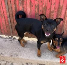 El pequeño, aparte de comido de pulgas y garrapatas las cuales ya han sido retiradas, presenta una extremada delgadez pero está bastante bien.