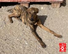 Este precioso galgo fue encontrado abandonado y carente de chip, una familia preciosa pese a no tener espacio, le recogieron y llevaron a casa hasta conseguir la ayuda.
