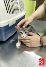 Tras recibir un buen baño, se vió que tenía una herida horrible en su barriga, así que ha tenido que pasar por el vete.