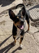 Esta preciosidad a la que hemos llamado TORETTO es un perrito joven, alegre, sociable con perros y gatos.