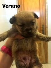 MERE HERMANA DE MADAME. Recibimos un aviso de una perrita que corría gran riesgo de ser atropellada. Fuimos en su busca y la encontramos cruzando la carretera, tenia mucho miedo y al intentar acercarnos salía corriendo. La seguimos por descampados entre basura y chabolas. Nos llevó hasta una casa abandonada llena de escombros, basura, preservativos, agujas, heces y ratas. Allí estaban ellos, 6 preciosos cachorritos llenos de pulgas hasta los ojos. Su madre se escondió al vernos llegar, asustada, gruñía en una esquina intentando proteger a sus pequeños.