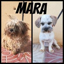 Nos dieron aviso de una perrita en muy malas condiciones. Nos encontramos a una pequeña "maraña" de nudos donde era imposible distinguir apenas su cuerpo. No conocemos nada de su historia pero de la manera que tenía su pelo, dudamos que lleve poco abandonada.