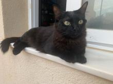 Es una gatita cariñosa, dulce, melosita y aparentemente muy sana. Solo estaba cuajada de pulgas, así que una vez limpita y bien alimentada, solo necesita una familia.